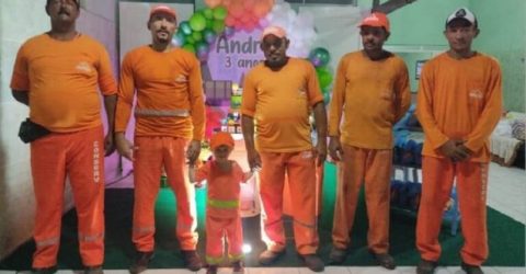 O pequeno André é fã dos rapazes que são responsáveis pela limpeza urbana em Patos e sempre vibra quando o caminhão do lixo passa na sua rua