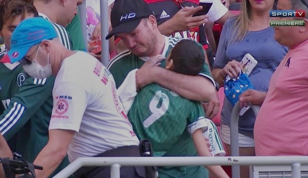 Gás de pimenta: Pai chora ao retirar menino cadeirante durante confusão entre torcedores. Assista!