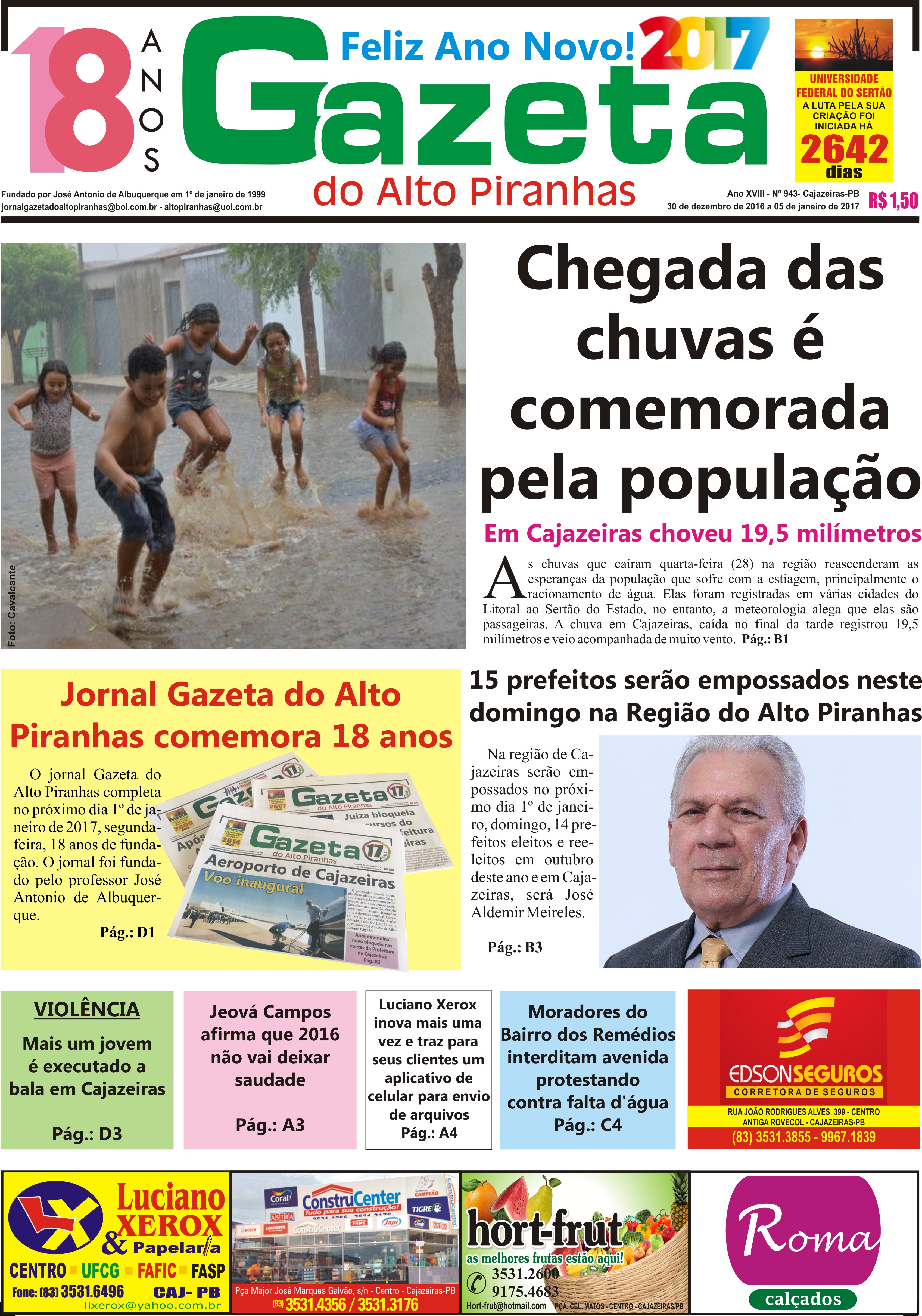Capa do Jornal Gazeta do Alto Piranhas – 07 de Janeiro