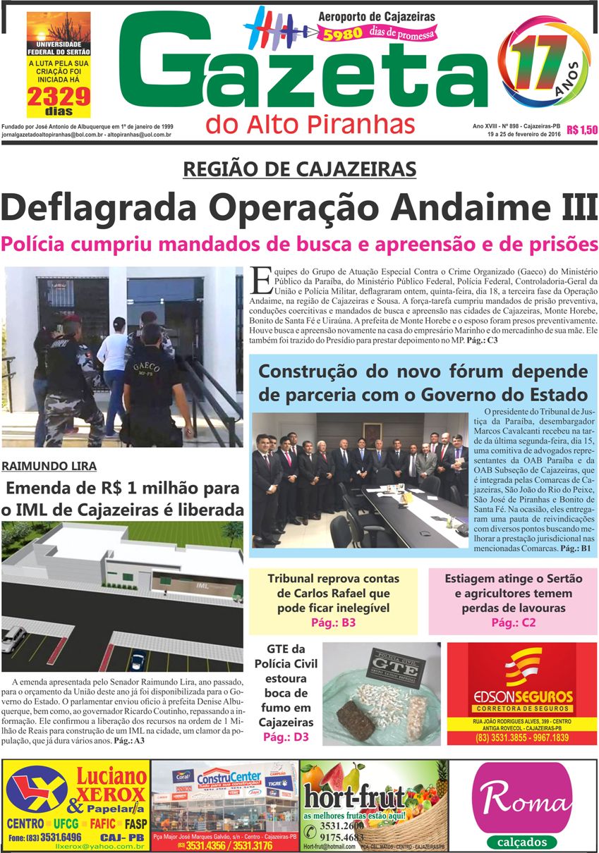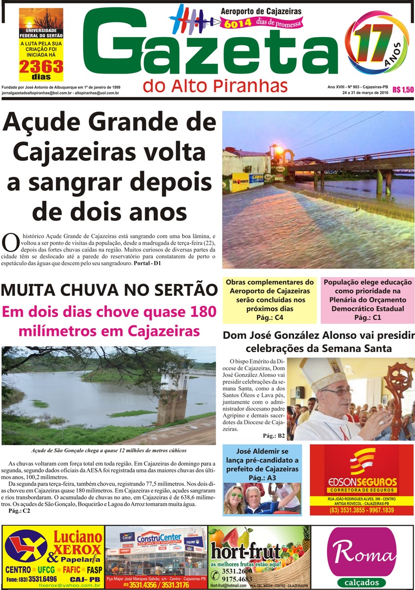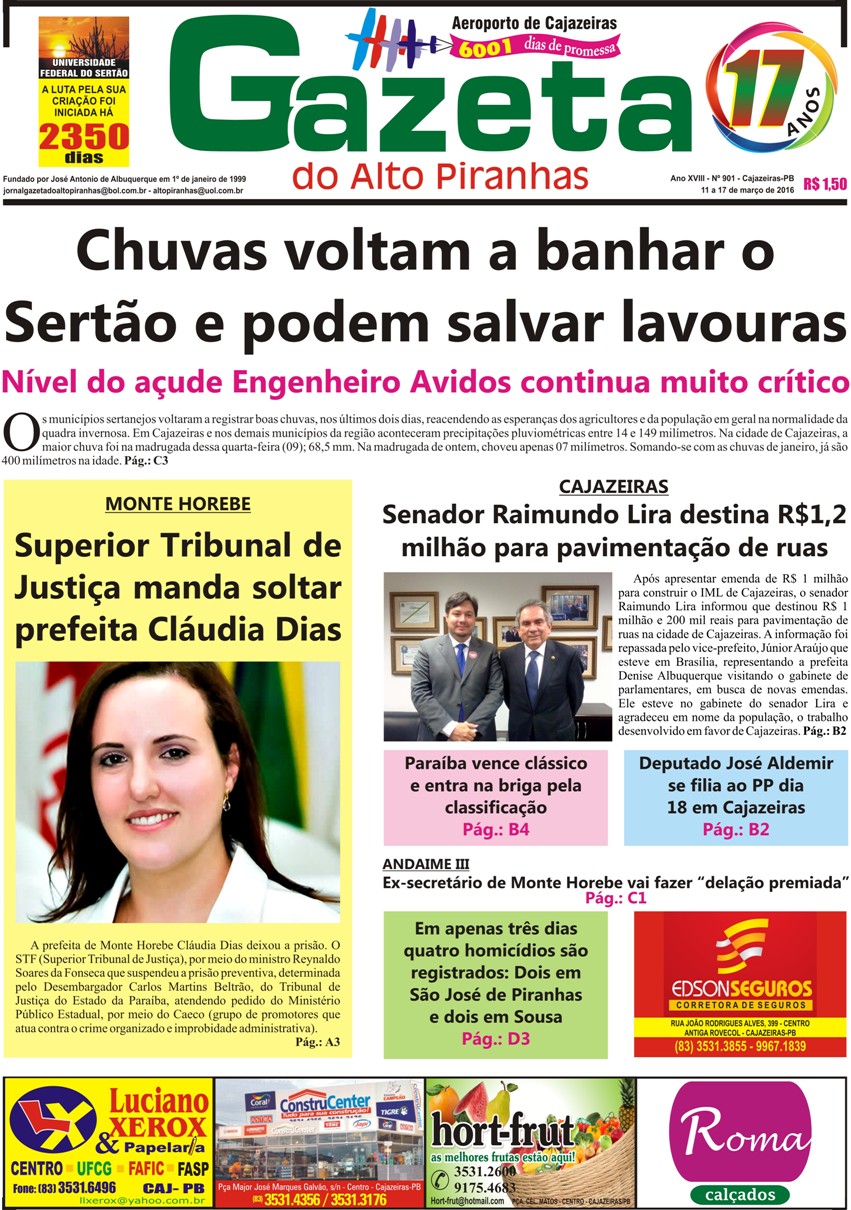 Capa do Jornal Gazeta do Alto Piranhas – 25.03.2016