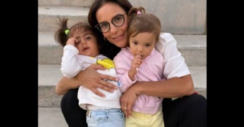 Ivete Sangalo posta foto com as gêmeas na web e se declara: “Meus mundos apertados num abraço”