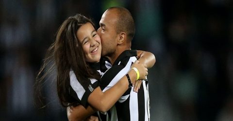 Giulia, de 11 anos, entrou em campo com o pai, Roger, e teve o nome gritado pelos torcedores
