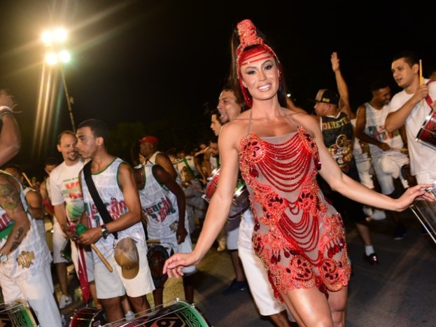 Modelo fitness participou na noite desta terça-feira, 24, do ensaio técnico da X-9 Paulistana
