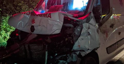 Ambulância do Hospital de Pombal fica parcialmente destruída após colidir com animal na BR 230