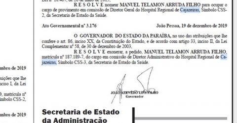 O governador João Azevêdo fez mudanças em cargos da saúde no Sertão da Paraíba. Portarias já foram divulgadas no DOE.