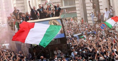 Fora do protocolo original, a seleção italiana embarcou em outro ônibus aberto que desceu a Via del Corso até a Piazza Venezia, com os jogadores acenando para a multidão e erguendo o troféu