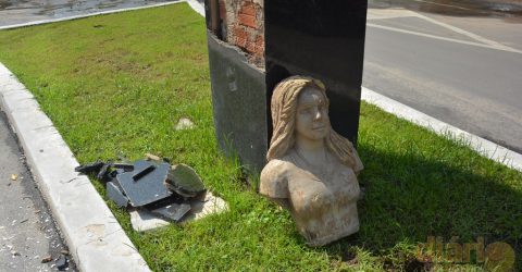 VÍDEO: Vândalos quebram monumento em homenagem a jovem que faleceu vítima de acidente em Cajazeiras