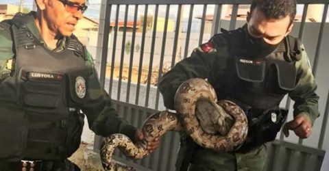 Uma equipe da polícia ambiental foi ao local e fez o resgate da jiboia que foi devolvida ao seu habitat natural.
