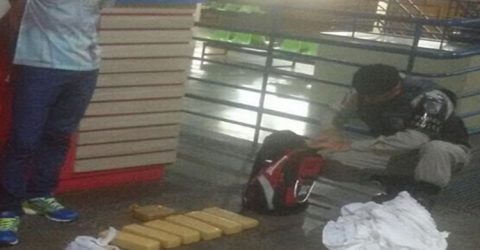 Na bagagem do acusado foi encontrado aproximadamente 7 kg de maconha prensada.