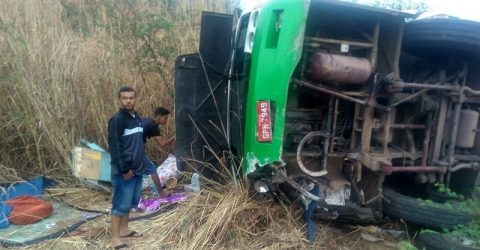 Veículo capotou em uma curva na Serra da Vila Feitosa
