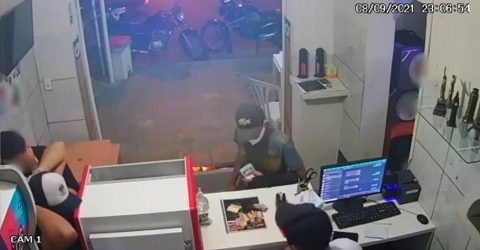 VÍDEO: Homem armado assalta lanchonete, faz clientes de refém e leva dinheiro e celulares, em Sousa