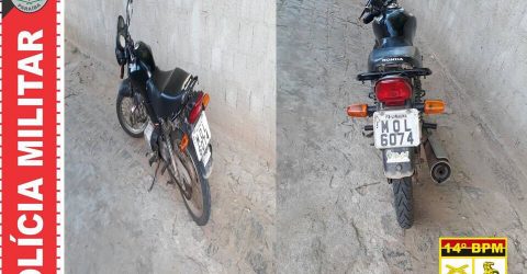 Policiais Militares do 14° BPM recuperaram, na tarde de hoje (04), uma motocicleta tomada por roubo na cidade do Lastro.