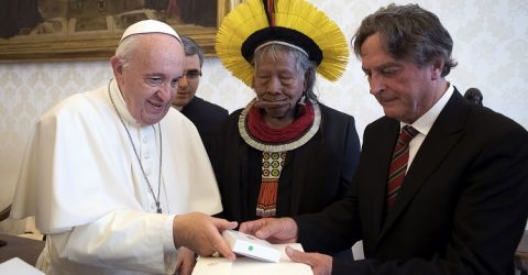 Papa Francisco recebe líder indígena brasileiro Raoni