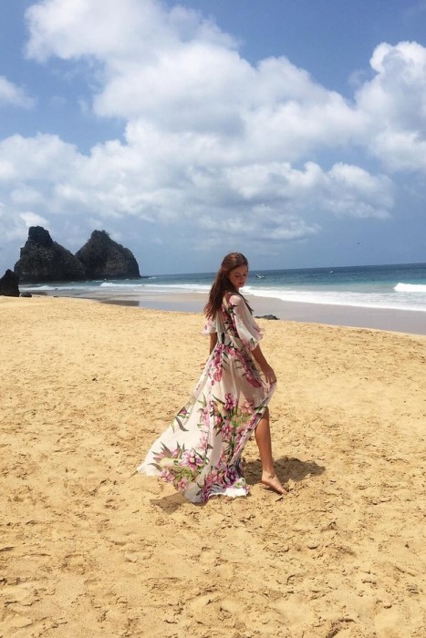 Na noite deste sábado, 31, atriz escolheu um vestido com decote generoso nas costas para celebrar a chegada de 2017 em Fernando de Noronha