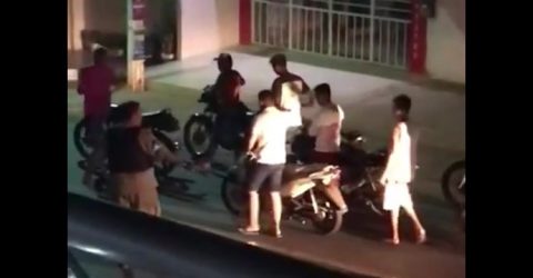 Em um vídeo divulgado nas redes sociais, é possível ver os jovens sendo conduzidos pela Polícia para a delegacia.