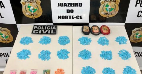A Polícia Civil apreendeu 750 comprimidos de ecstasy e 25 selos de LSD. O casal está preso e à disposição da Justiça