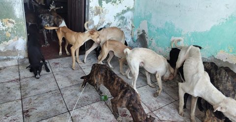 Animais estavam em ambiente insalubre, com fezes, urina, muitos magros, doentes, feridos e em extrema negligência. O grau de fome, segundo a polícia, era tão severo que, ao ser colocado um saco de ração, os cães consumiram em poucos segundos