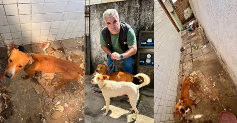 Os cachorros foram encontrados em estado crítico: extremamente magros, infestados por carrapatos e abandonados em ambiente insalubre. Prefeitura fez resgate após denúncia