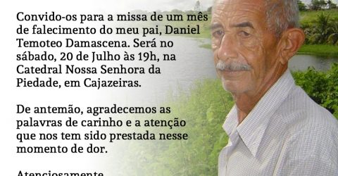 A família agradece a todos que participarem deste ato e fé e solidariedade humana.
