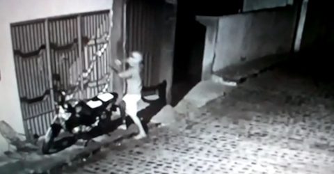 Criança que estava na rua percebe, corre e avisa ao pai, e juntos conseguem entrar em casa antes de serem rendidos pelo suspeito.