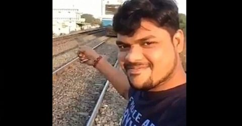 Na gravação, é possível ouvir que a locomotiva emite um sinal sonoro alertando o jovem