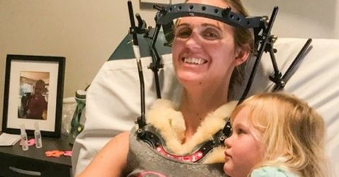 Depois de descobrir que havia quebrado o pescoço, ela precisou usar, durante 14 semanas, um tipo específico de prótese cervical