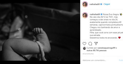 Atriz Nathalia Dill dá à luz Eva, sua primeira filha