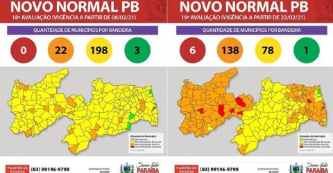 De acordo com o apontamento que passa a vigorar a partir da próxima segunda-feira (5), os municípios da região de Sousa estão classificados nas bandeiras verde, amarela e laranja