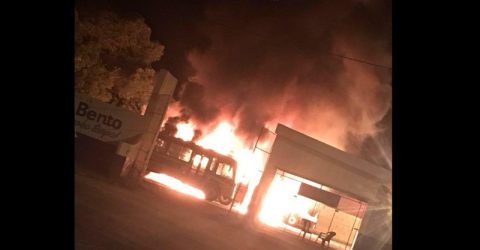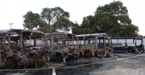 As chamas foram iniciadas em transporte escolar, mas como estavam estacionados, o fogo se alastrou rapidamente para os demais.