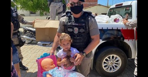6º BPM faz entrega de brinquedos, guloseimas e cestas básicas em evento do ‘Criança Feliz’ em Cajazeiras