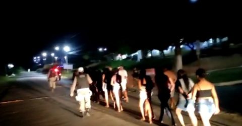No local havia som de paredão e pessoas inalando lança-perfume. Dezenove frascos do entorpecente foram apreendidos