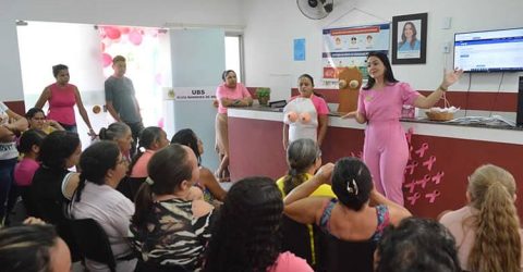 A ação reuniu mulheres em frente à sede das duas secretarias municipais, que fica localizada na Rua Osvaldo Pinheiro, com o objetivo de sensibilizar o público feminino com relação à campanha Outubro Rosa