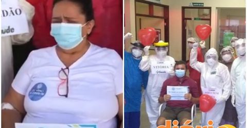 Aos saírem do hospital, eles foram aplaudidos e receberam homenagens dos profissionais de saúde
