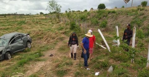 Padre de Bonito de Santa Fé capota carro ao desviar de animal, mas sai ileso do acidente
