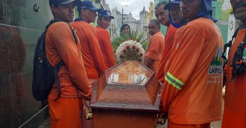 Dezenas de trabalhadores da coleta do lixo prestaram homenagens ao colega de trabalho Pantchuí
