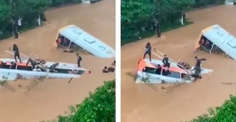 Rafaela e Pedro estavam em um dos ônibus que foram arrastados pela enxurrada e ficaram submersos. Ela relata os momentos de pânico dentro do veículo