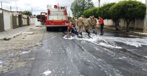 Acidente com caminhão esvazia tanque de óleo de comida em via movimentada e pista é interditada em Patos