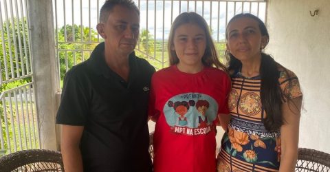 Maria Vitória, de 13 anos, é campeã nacional do Prêmio Ministério Público do Trabalho na Escola, que aborda assuntos relacionados ao trabalho infantil, nas categorias desenho, música, conto e poesia