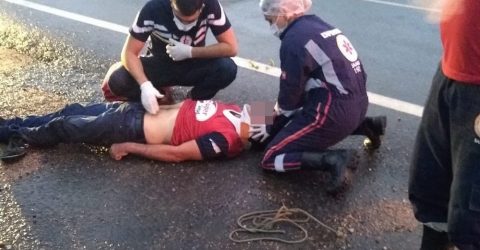 O Samu foi acionado, prestando os primeiros socorro a vítima. O fogo que foi informado era a moto da vítima que foi queimada.