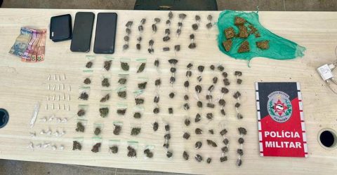 Durante a abordagem, o suspeito foi flagrado com uma sacola contendo entorpecentes. Ao tentar fugir para o interior da residência, ele foi rapidamente contido e detido pelos policiais