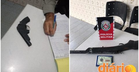 Garantindo a segurança, a PM conseguiu apreende arma de fogo e simulacro em ação