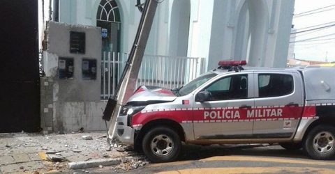 Após a colisão a viatura ainda se chocou com um poste em frente à Igreja Congregacional.