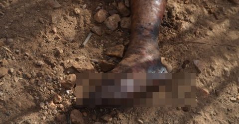 O cadáver está vestido, com um short jeans, uma blusa regata escura e unhas pintadas de rosa, além de uma tatuagem na cintura.