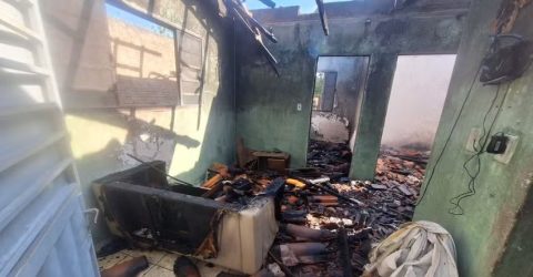 A intensidade do fogo causou o colapso total do telhado, além de danos severos à estrutura interna e a perda integral do mobiliário da casa