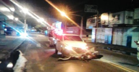 De acordo com informações da Polícia Militar, o acidente foi registrado na Rua João Rodrigues Alves, por volta das 03h, envolveu uma motocicleta e um carro e deixou uma pessoa ferida.