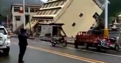 Imagens exibidas pela CNN mostram um prédio desmoronando no Tibete,