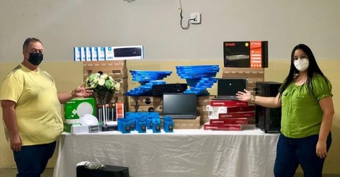 Na oportunidade, foram entregues 25 notebooks acompanhados com mouse e teclado, 01 computador que comportará o servidor da saúde do município, roteadores e dois switchs de 24 portas