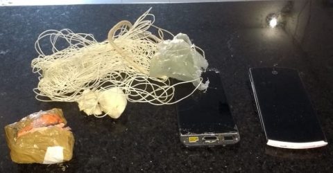 Dois pacotes com celulares e carregadores são arremessados para dentro do presídio de Cajazeiras