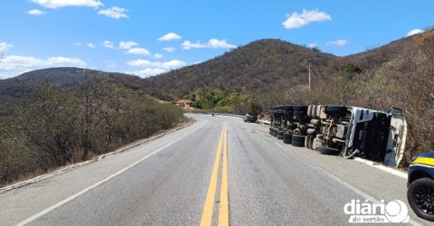 VÍDEO: Caminhão que tombou na Serra de Santa Luzia transportava rocha ornamental de 34 toneladas, diz PRF