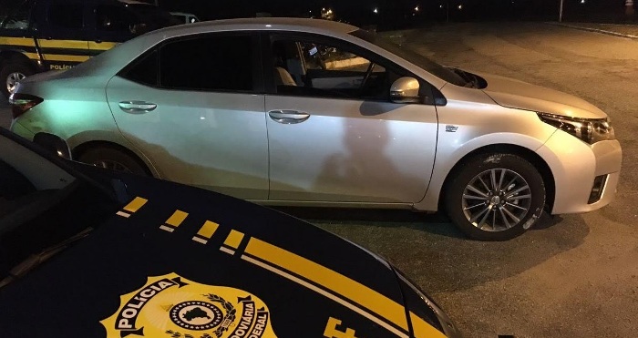 Após verificarem a procedência do carro nos sistemas da PRF os policiais confirmaram a suspeita de que o carro era roubado.